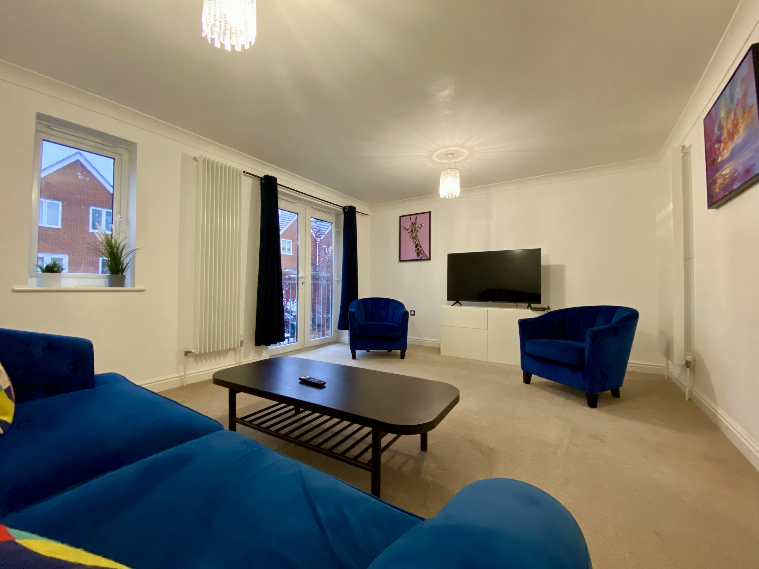 Inside, the fully equipped kitchen allows for easy meal prep, while the living area is set up for comfort and quiet evenings in. The four bedrooms each feature cosy beds and practical storage, and the two modern bathrooms ensure convenience for all guests. The property features 3 double bedrooms along with 1 twin room, providing the perfect base for families or groups of professionals.