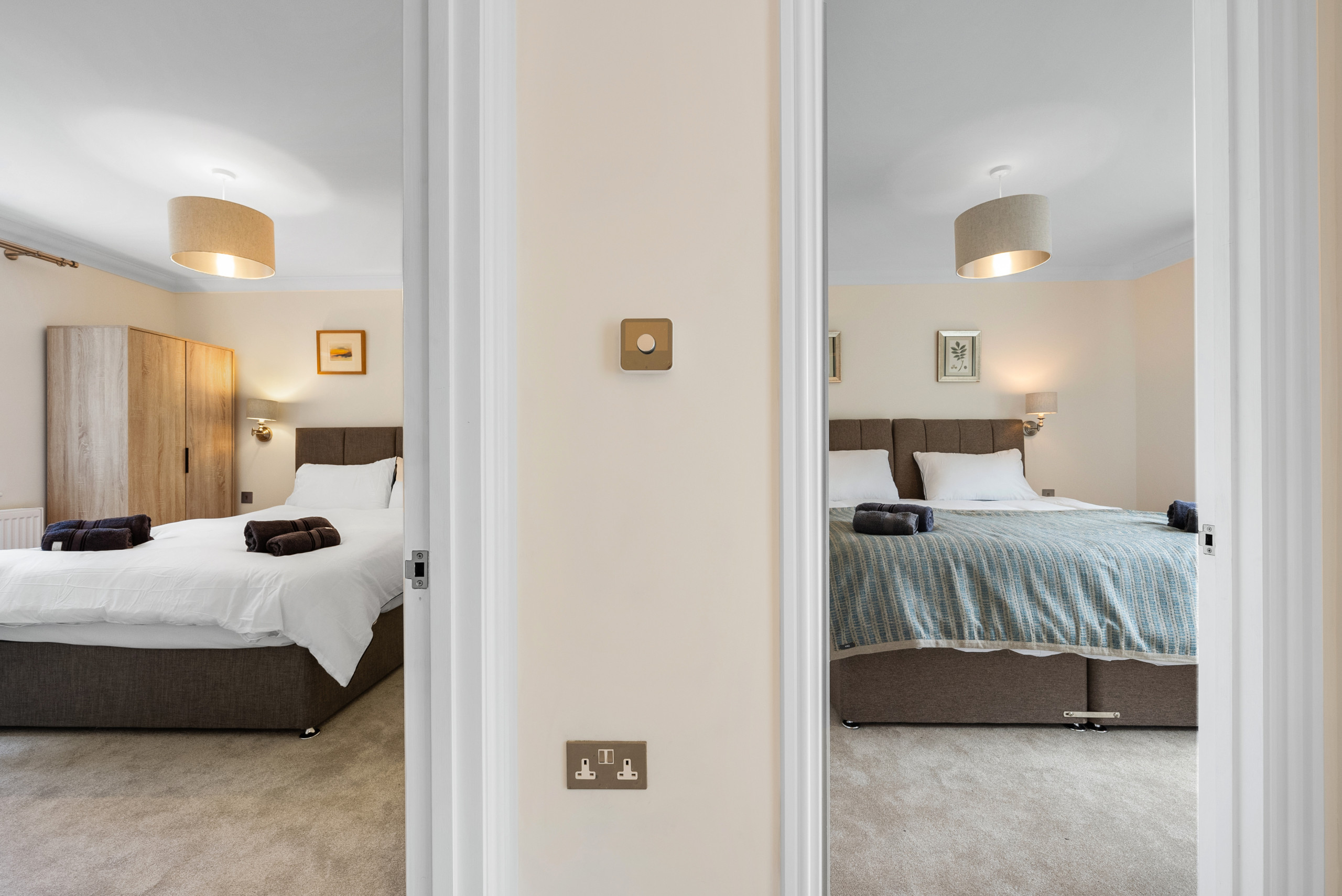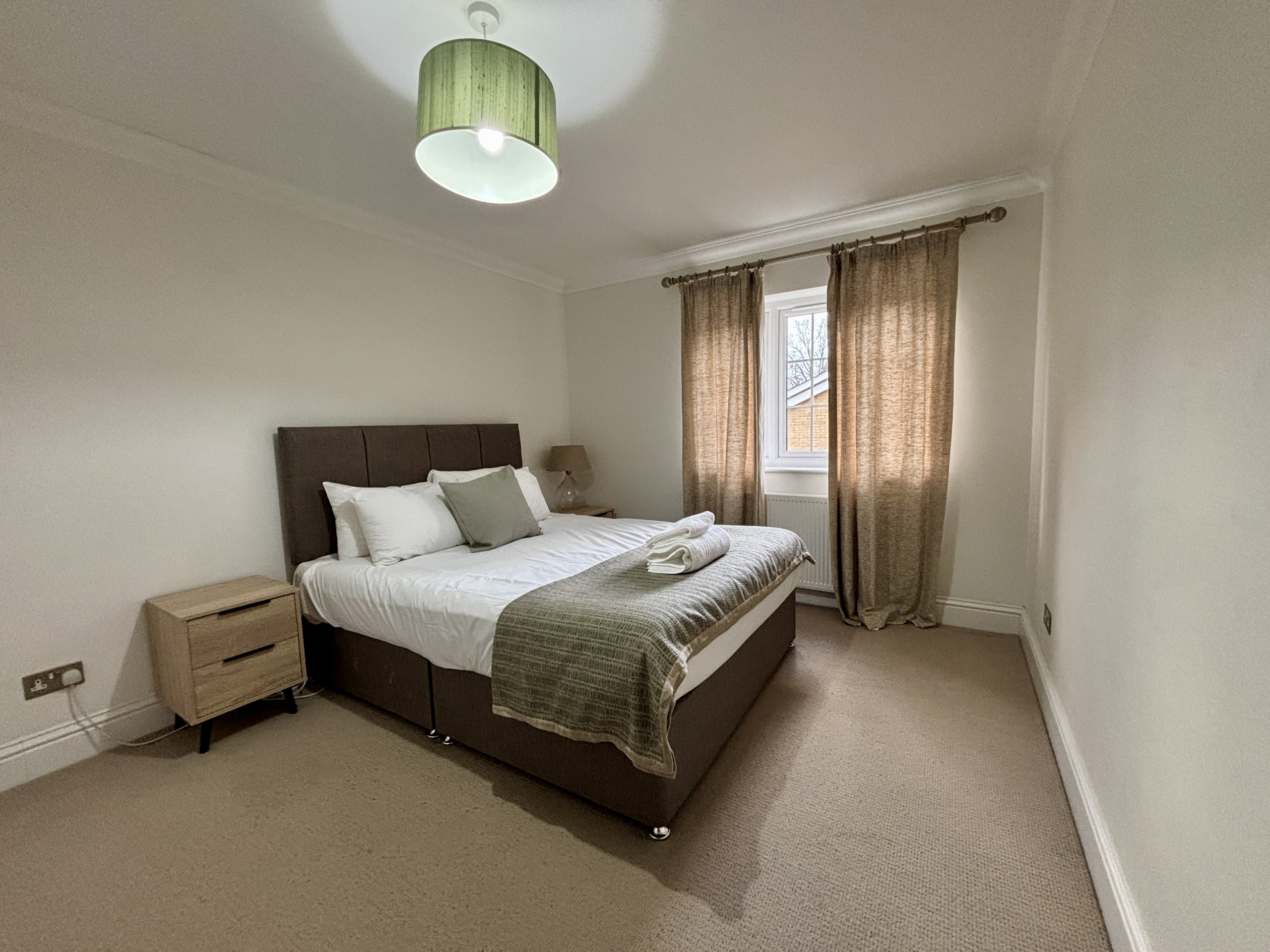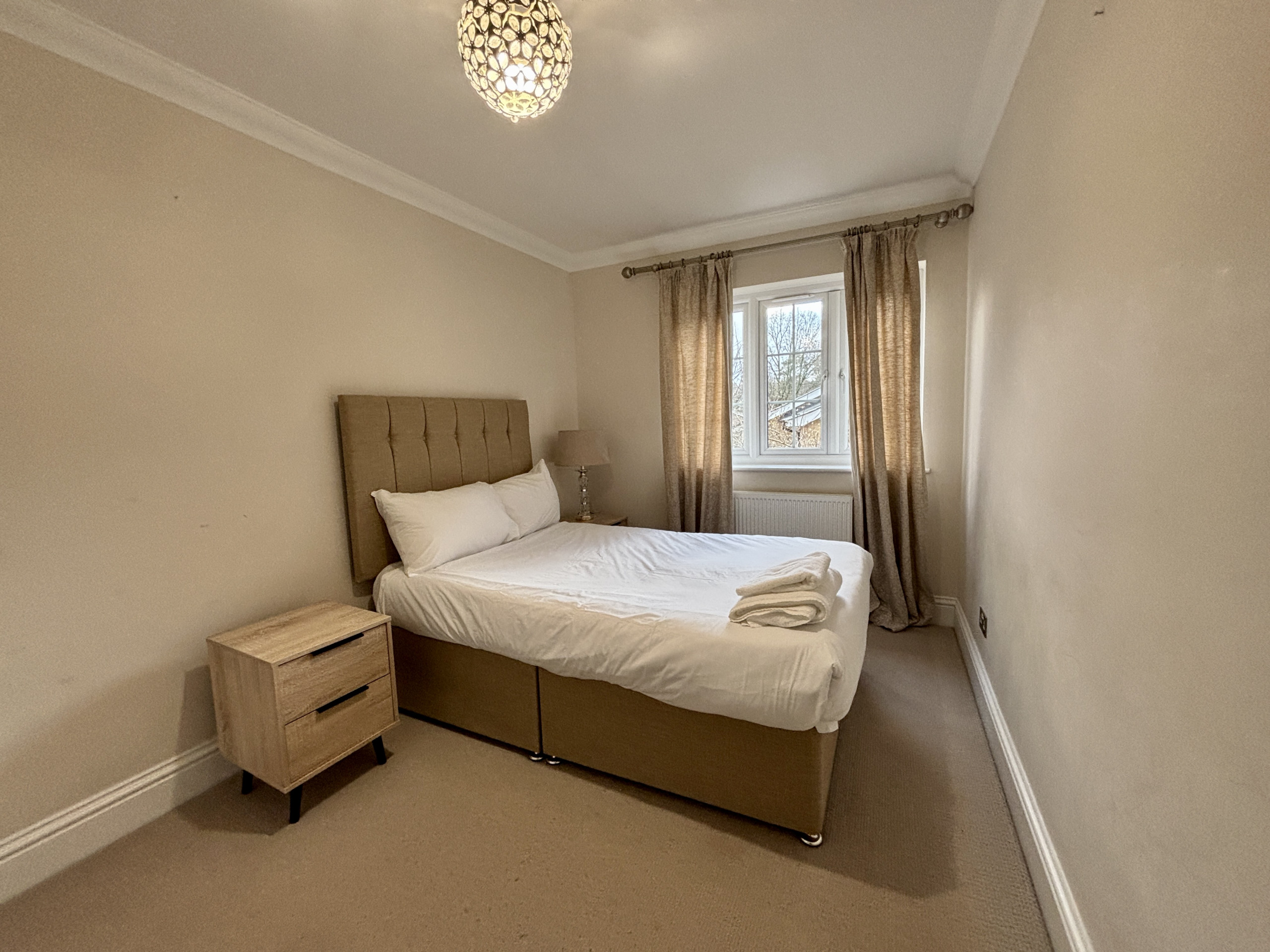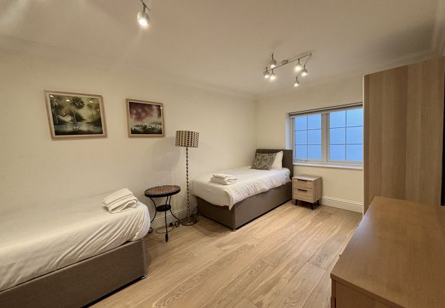 Inside, the fully equipped kitchen allows for easy meal prep, while the living area is set up for comfort and quiet evenings in. The four bedrooms each feature cosy beds and practical storage, and the two modern bathrooms ensure convenience for all guests. The property features 3 double bedrooms along with 1 twin room, providing the perfect base for families or groups of professionals.